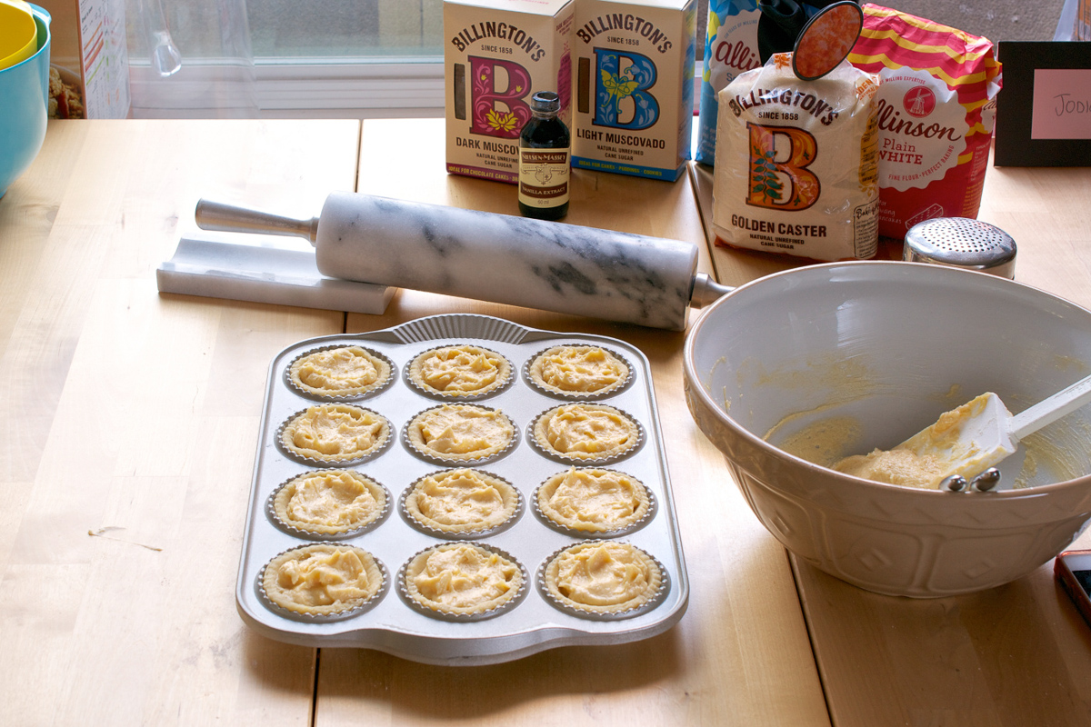 I decided to create a recipe myself and came up with these sweet little lemon meringue pies using the Billington’s golden caster sugar for an extra caramelly edge to the bake. I like my pastry short but not too sweet and add lemon zest to it so the whole package is lemony through and through. You can find my recipe for lemon curd here.  Perhaps a little controversially, I add a little lemony cake batter which has some ground almonds in to give it a frangipane vibe and bake the pastry, curd and cake layer all in one.