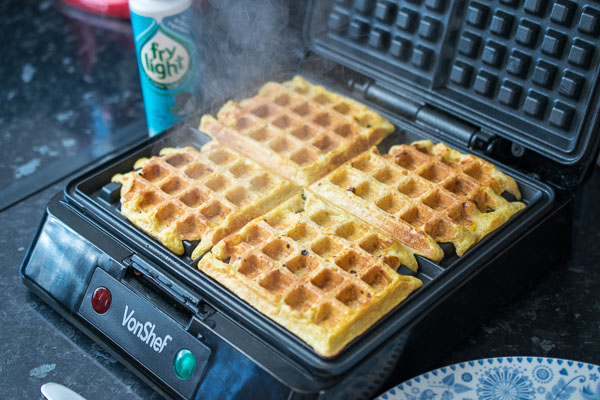 Now, you might be a bit worried at the appearance the grated carrot and the spice gives the batter, but you’ll be surprised how the carrots melt into the batter upon cooking. The waffles come out golden and glorious. Plus, how often do we get a portion of vegetables with our breakfast? Not often enough I bet!