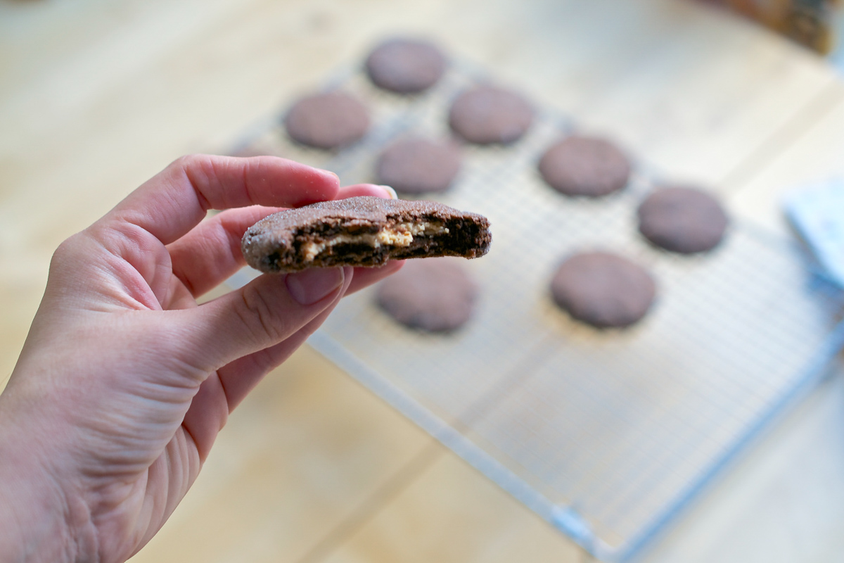 I thought I’d start with making some cookies – these are Magic In The Middle Cookies as found on Carrie’s beautiful blog – The Patterned Plate (link in my blogroll).  Addictive, compulsive eating.  Hence I promptly gave them to Hungry Hubby to take to work, out of harm’s way!  The Kenwood Chef made easy work of creaming the butter and sugar together – despite the lack of the flexible plastic windshield wiper my KA flat beater has, I didn’t need to scrape down the mixture as I prepared the dough.