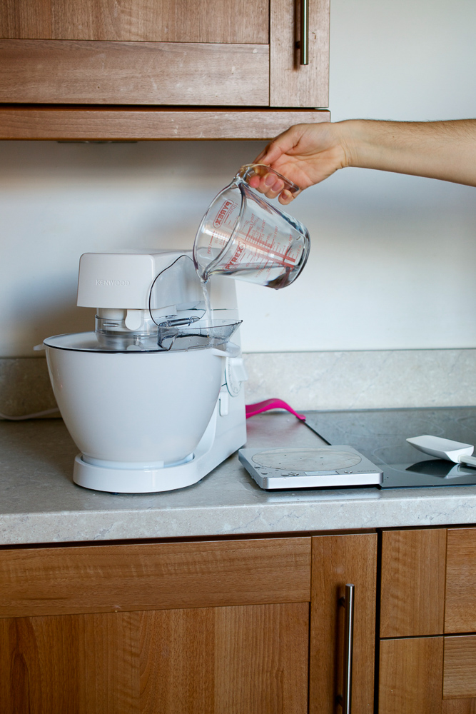 The instruction book tells me the Kenwood is capable of taking quite a weight of raw ingredients when it comes to making bread doughs.  There is a helpful table which tells you the maximum weights each model can take.  Very handy, especially if you like to bulk bake a few loaves at a time.  Also, a good point is the plastic mixer bowl is super light so will mean you get a more accurate weight measurement on your digital scales, using the tare feature.  I sometimes worry that using my 1.2kg earthenware bowl on my scale might make it less conducive to weighing out 7g of yeast accurately by the time I’ve got 750g of flour and other ingredients in it as well!  You won’t have to worry about that if you have this Kenwood and its svelte attachments 😉