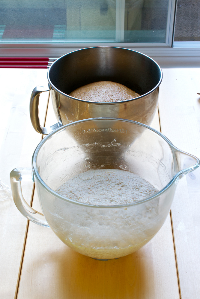 Knead for 5-10 minutes by hand or slightly shorter in the stand mixer (which is how I do it) and then pop in a greased bowl and cover with cling. Repeat for the second dough mix and leave them until doubled in size – worth checking at around 40 minutes especially if your kitchen is hot.
