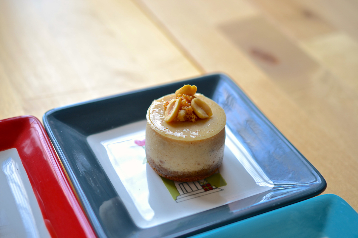 Next just had to be peanut butter. Having made some heavenly honey roast peanut praline for the truffles in my last post, it seemed a shame not to use the leftovers to sprinkle on top along with some crushed salted peanuts. There is something about the saltiness of peanut butter that works so extremely well to balance a sweet cheesecake that I think I am willing to go out on a limb and say the PNB cheesecakes were my favourite flavour. Well. That was until I tried the last flavour – Nutella.