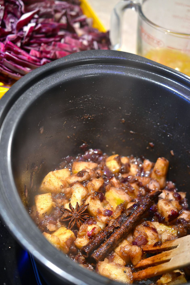 Although I suspect I will continue to do little tweaks here and there, I feel this recipe is pretty close to my idea of the perfect braised red cabbage. I started off cooking this in the on the stove, then I tried my slow cooker and was delighted with the results. Slow cooking is great if you have a short working day or home whilst whatever you’re making cooks but if Santa has brought you an Instant Pot pressure cooker, and you are as pushed for time as I am, then you’ll be thrilled to hear you will have perfectly braised red cabbage in just 10 minutes of cooking time!