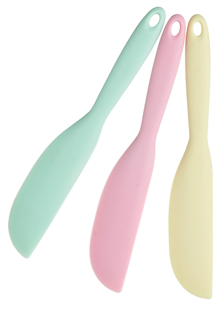What more could any home baker wish for than a brand new set of flexible and pretty spatulas to mix up their cake batters and frostings? Throw out the wooden spoons with burn marks, your old plastic spatulas with great divots in them from when you forgot how hot the pan was when making a caramel, leaving you with a mangled and partially melted utensil. That has so never happened to me *whistles innocently*.